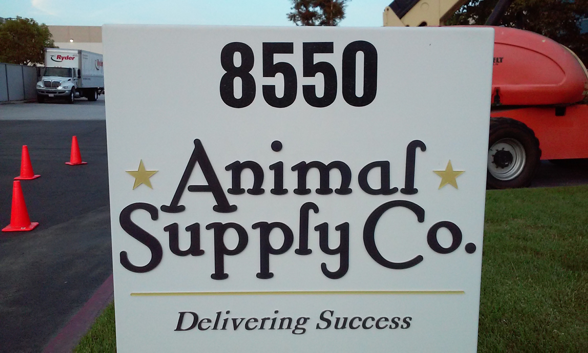 Animal Supply Co., Santa Fe Springs, CA. 1/8" clear acrylic letters, back printed and laser cut.