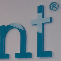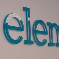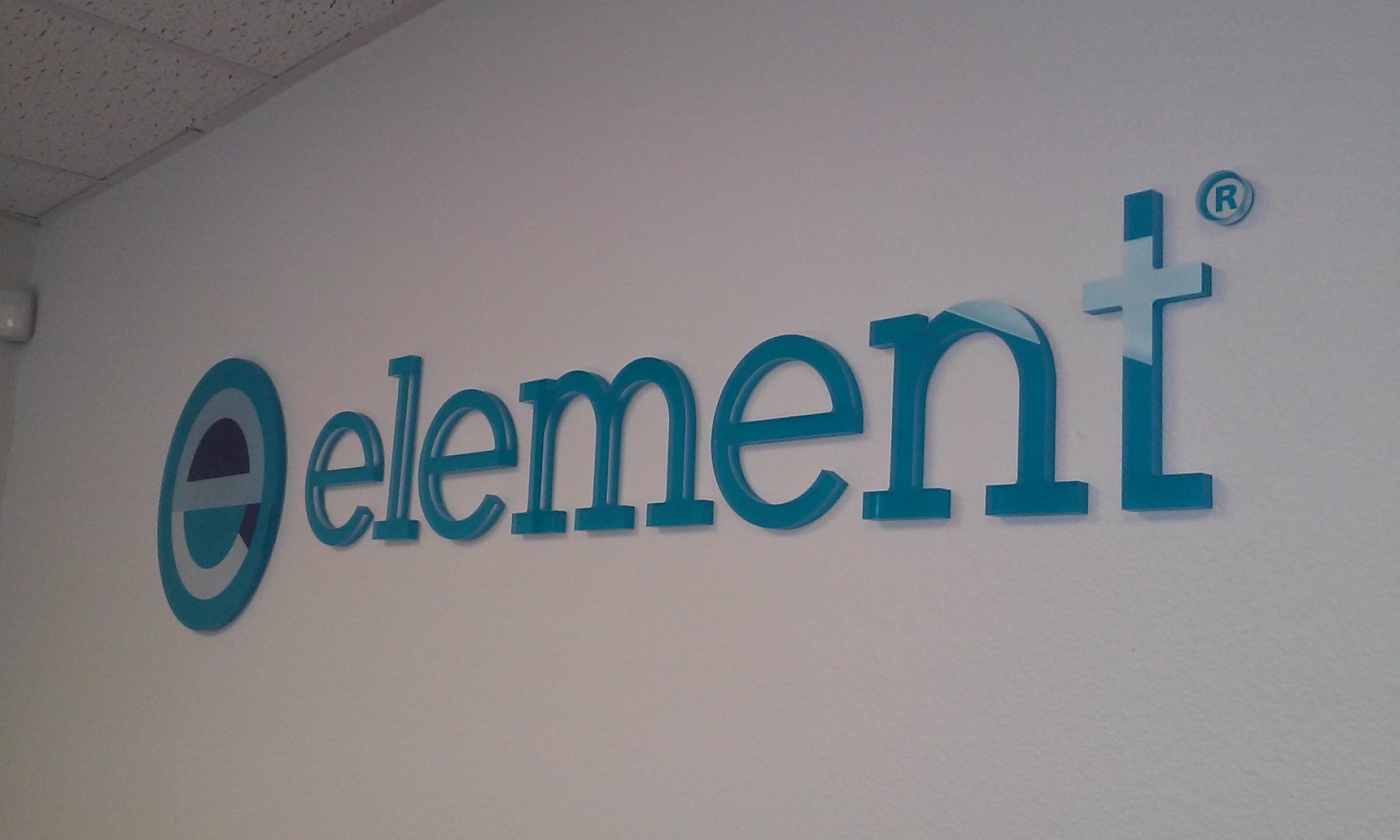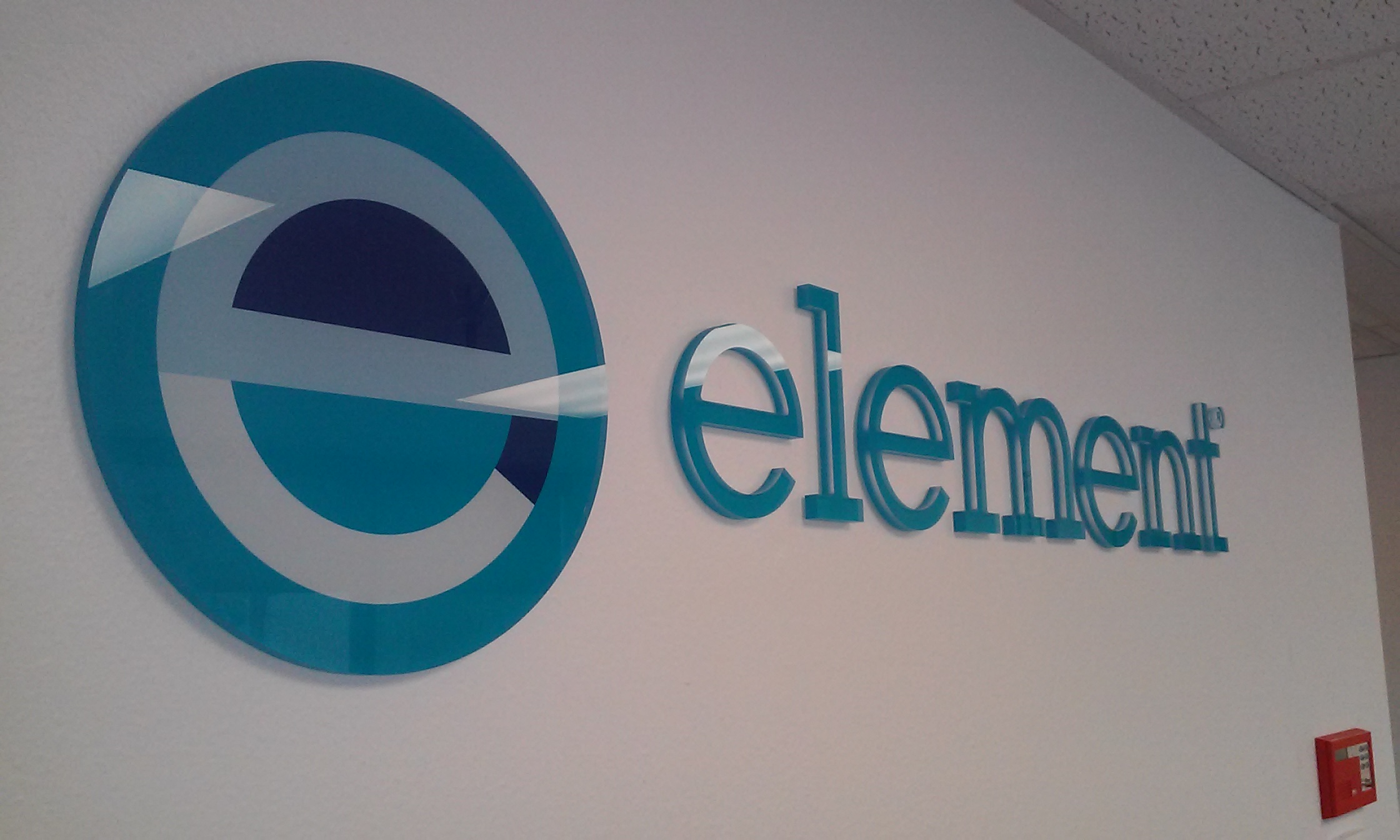 Element Materials, Huntington Beach, CA. 1/2" clear acrylic letters, backface printed.