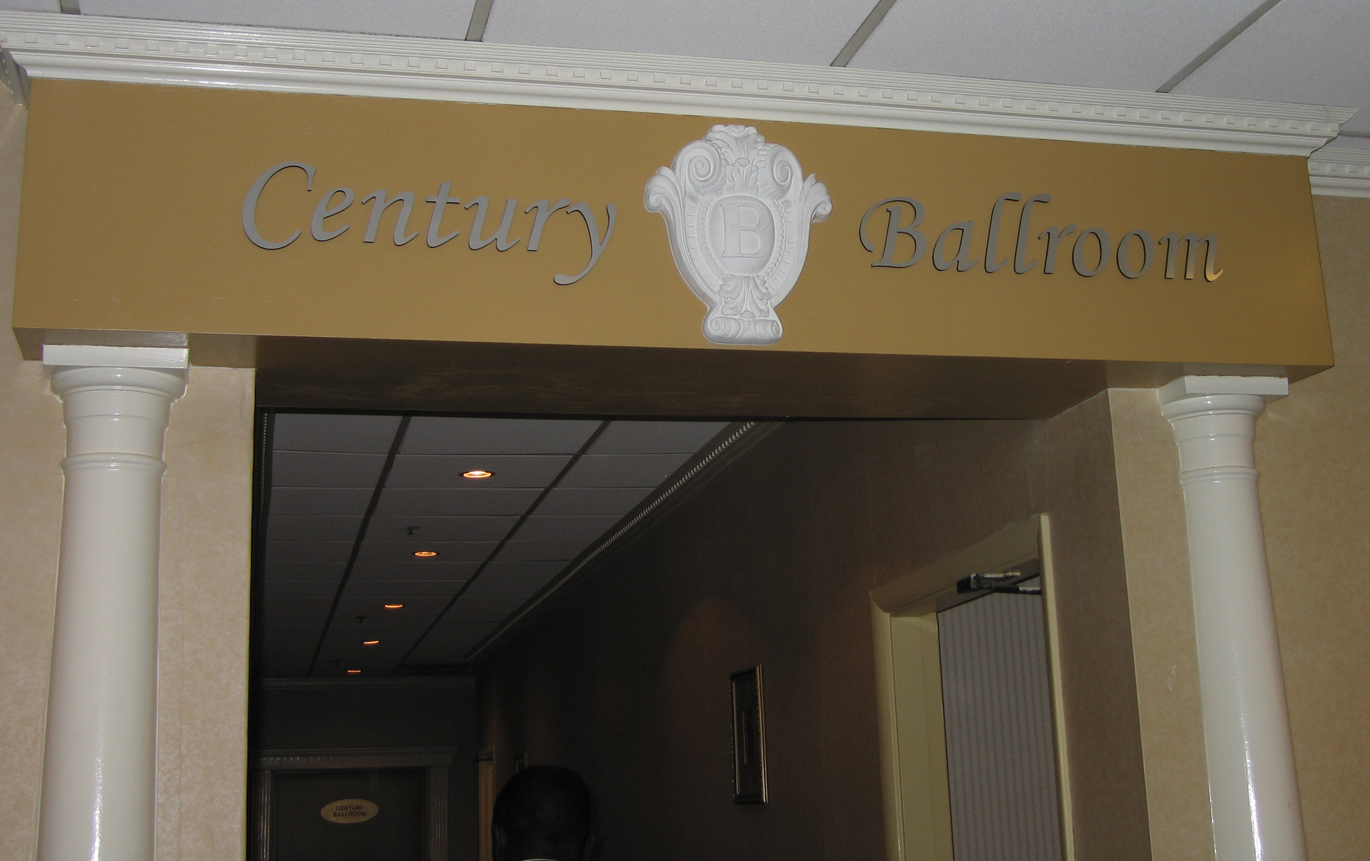 Clarion Hotel, Los Angeles, CA 1/4" Brushed silver-on-black alumaplast.