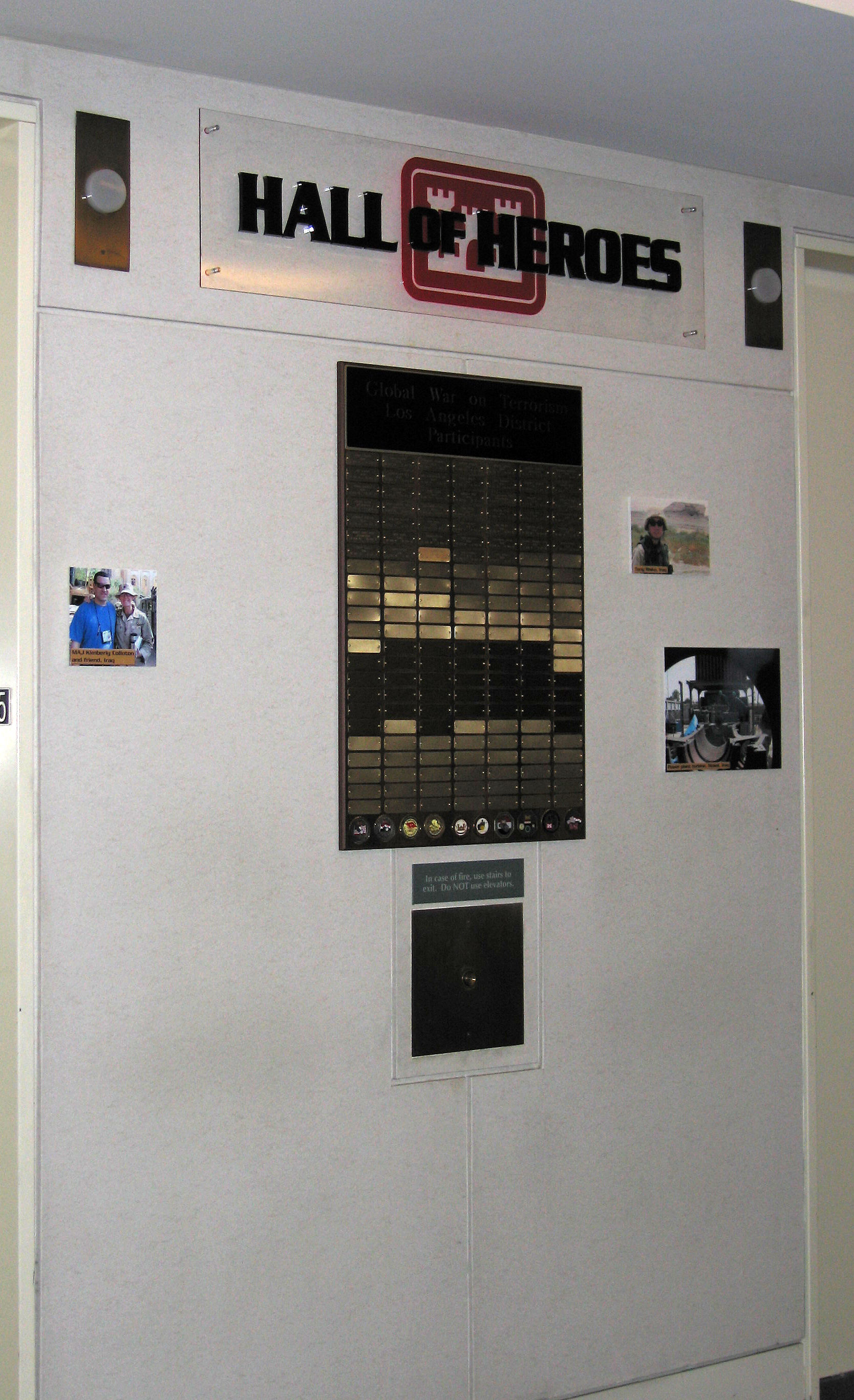 US Army Corps of Engineers, Los Angeles, CA. 1/2" acrylic letters, 1/8" acrylic logo, 1/4" acrylic background on standoffs, installed.