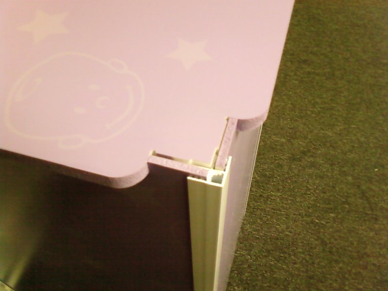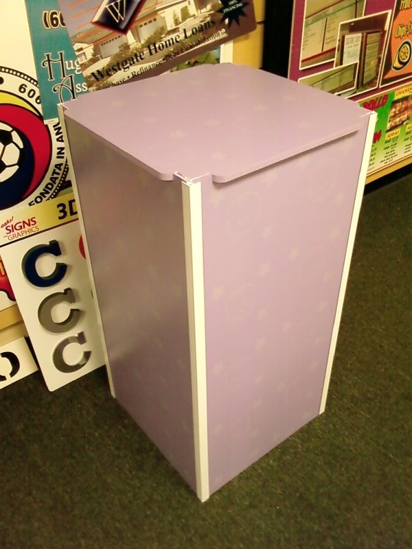 1/2" & 3/16" printed gatorboard, trade show display. Top removed to show how the corners assemble.